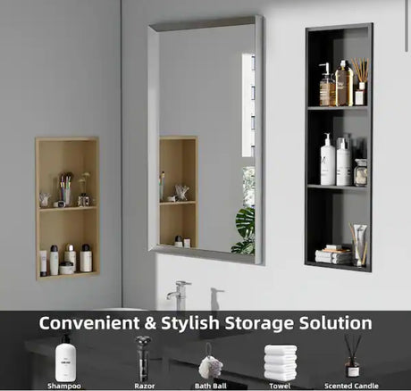 14 in. W x 12 in. H x 4 in. D 18-Gauge Stainless Steel Bathroom Shower Wall Niche in Matte Black