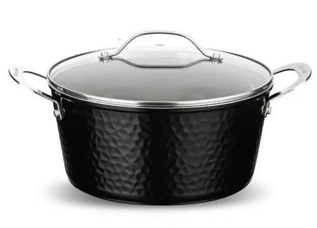 Hammered Black 5 qt. Aluminum Non-Stick Stock Pot with Glass Lid