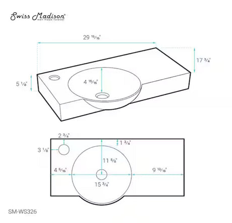 36” Wall Mount Solid Surface Left Side Bathroom Sink in Matte White.