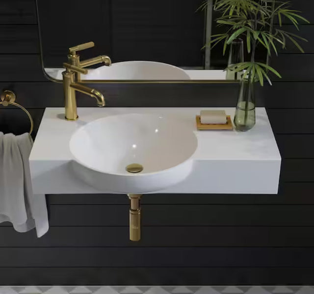 Chateau 29.31 in. Left Side Faucet Wall-Mount Ceramic Rectangular Bathroom Vessel Sink in Glossy White