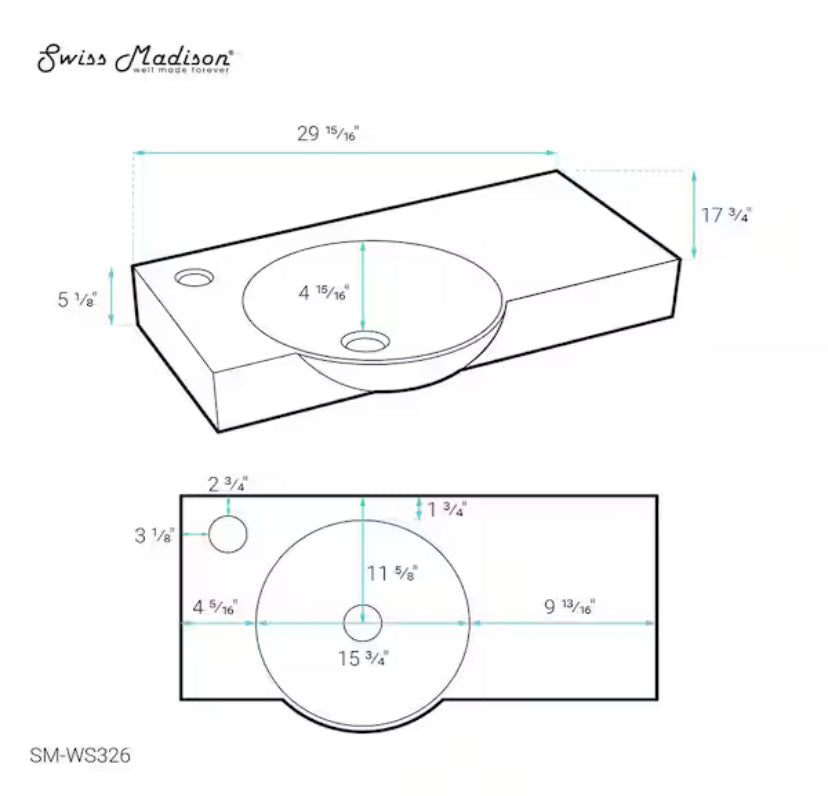 Chateau 29.31 in. Left Side Faucet Wall-Mount Ceramic Rectangular Bathroom Vessel Sink in Glossy White is backordered and will ship as soon as it is back in stock.