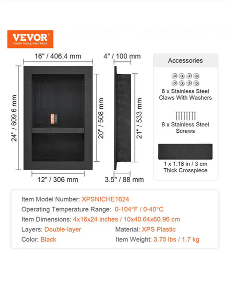 16 in. W x 24 in. H x 3.5 in. D Shower Niche Ready for Tile Double Shelf Organizer in Black