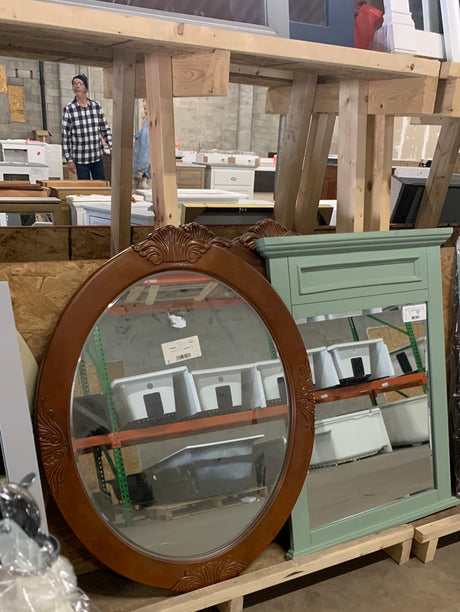 $85.00Unit price /UnavailableVery low stock (1 unit)30 in. W x 38 in. H Framed Round Beveled Edge Bathroom Vanity Mirror in cherry