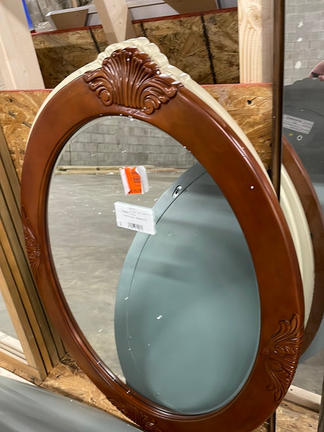 30” x 38” Framed Oval Beveled Edge Bathroom Vanity Mirror in Cherry
