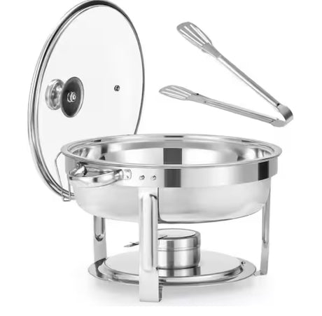6 qt. Stainless Steel Round Chafing Dish Buffet Set for Catering with Glass Lid Holder