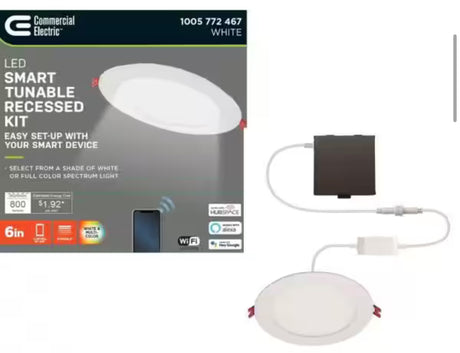 $20.00Unit price /UnavailableVery low stock (1 unit)6 in. Smart Ultra Slim New Construction and Remodel RGB+W LED Recessed Kit Powered by Hubspace