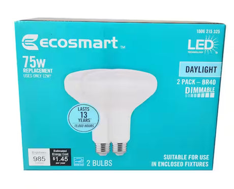 $25.00Unit price /UnavailableVery low stock (1 unit)75-Watt Equivalent BR40 Dimmable Energy Star LED Flood Light Bulb Daylight (2-Pack)