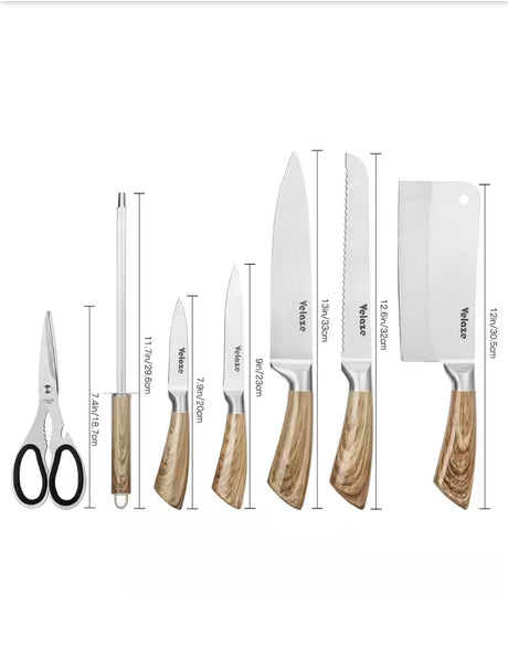 $80.00Unit price /UnavailableVery low stock (1 unit)8-Piece Brown Acrylic Handle Stainless Steel Knife Set with Knife Block