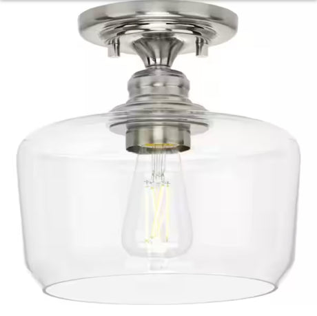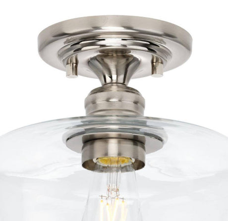 Aiken Collection 1-Light Brushed Nickel Clear Glass Farmhouse Flush Mount Light