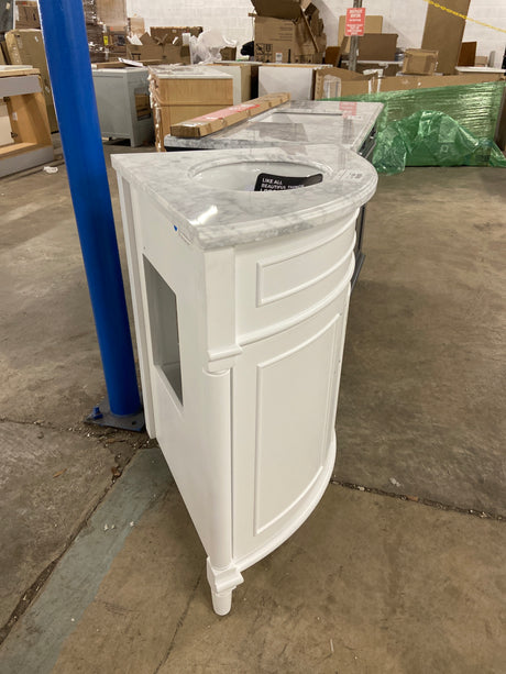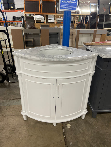 Aberdeen 32 in. Single Sink Corner White Bath Vanity with Carrara Marble Top (Assembled)
