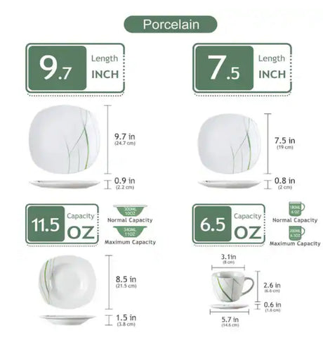 $150.00Unit price /UnavailableVery low stock (2 units)Aviva 30-Piece Modern Ivory White with Green Stripe Porcelain Dinnerware Set (Service for 6)