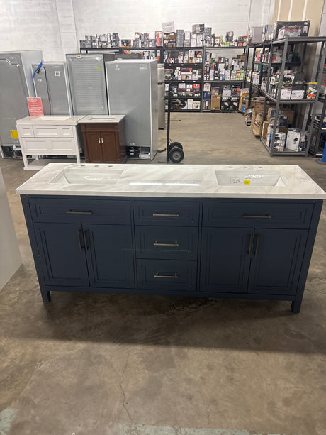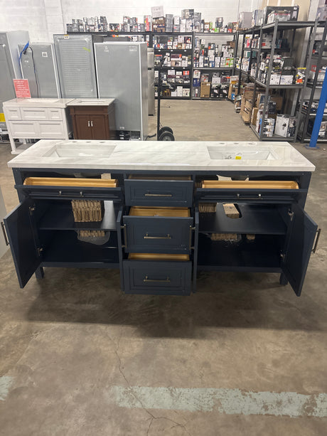 Merryfield 61 in. Double Sink Dove Grey Bath Vanity with White Carrara Marble Top (Assembled)
