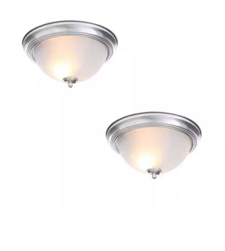 13 in. 2-Light Brushed Nickel Flush Mount (2-Pack)