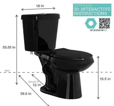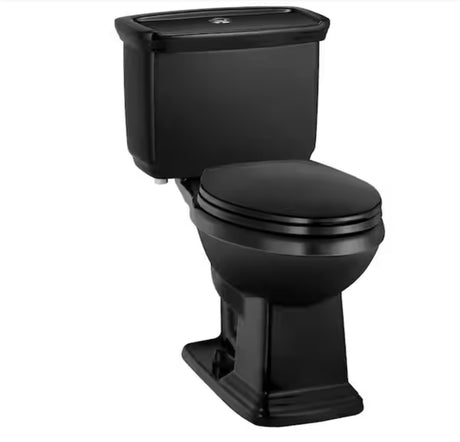 2-piece 1.0 GPF/1.28 GPF High Efficiency Dual Flush Elongated Toilet in Black, Seat Included