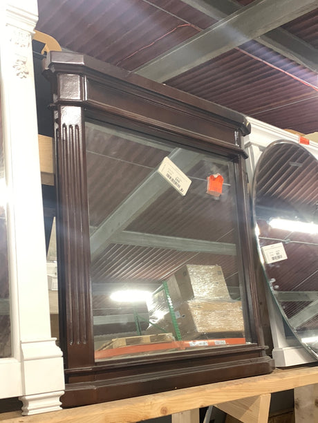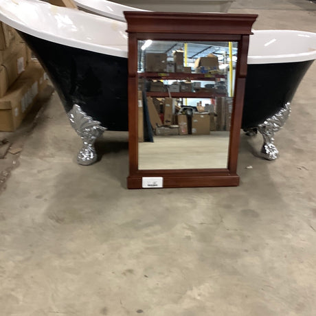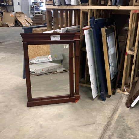 26 in. W x 30 in. H Framed Rectangular Beveled Edge Bathroom Vanity Mirror in Cherry