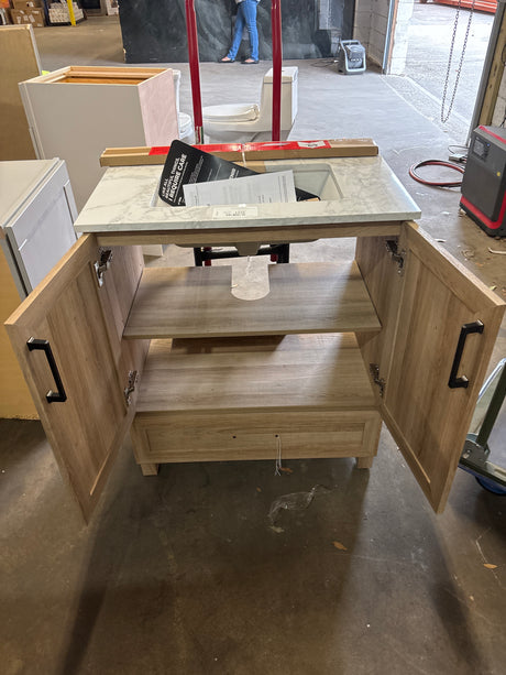 Tobana 30 in. W x 19 in. D x 34.50 in. H Bath Vanity in Weathered Tan with White Cultured Marble Top