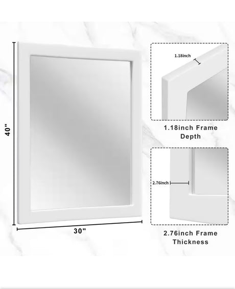 30 in. W x 40 in. H Black Vanity Rectangle Wall Mirror Aluminum Alloy Frame Bathroom Mirror
