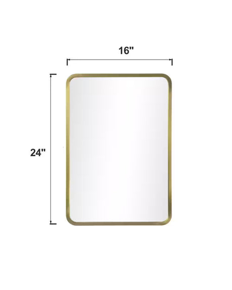 26 in. W x 38 in. H Rectangular Aluminum Alloy Framed Rounded Gold Wall Mirror