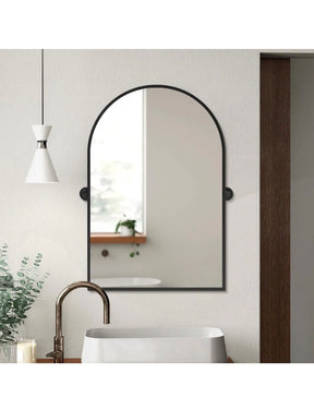 24 in. W x 31.5 in. H Modern Arch-Top Metal Framed Black Pivoted Wall Vanity Mirror