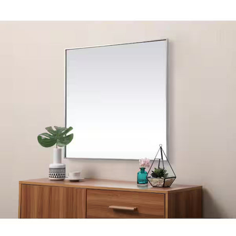 24 in. W x 36.2 in. H Rectangular Aluminum Frame Square Silver Wall Mirror