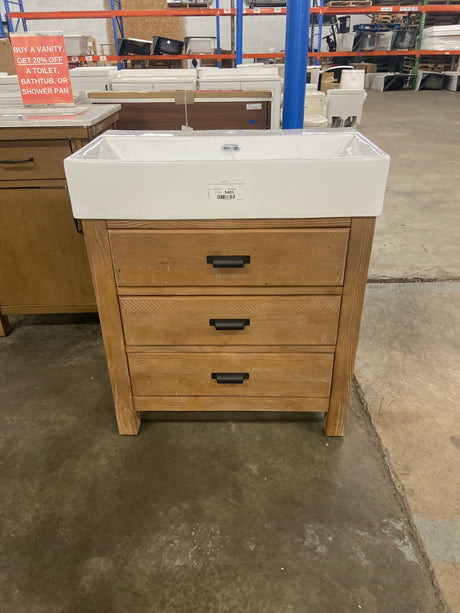 Ava 30 in. Single Bath Vanity in Reclaim Fir with Ceramic Vanity Top in White with Integrated Basin