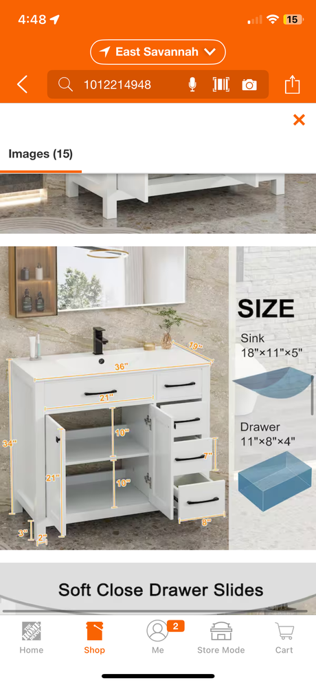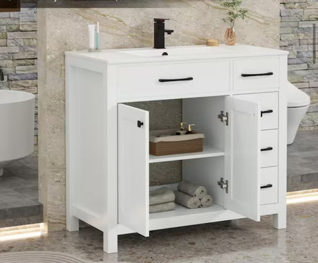 $95.00Unit price /UnavailableVery low stock (1 unit)36 in. W x 19 in. D x 34 in. H 1-Sink Freestanding Bath Vanity in White Without Top