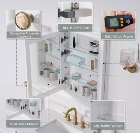 24 in. W x 32 in. H Rectangular Recessed Solid Wood Medicine Cabinet with Mirror, Left Hinge