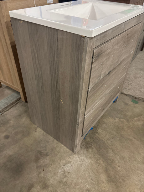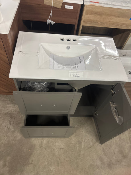 Salerno 32 in. Single Sink PVC Grey Standing Bath Vanity with White Sintered Stone Top Assembled