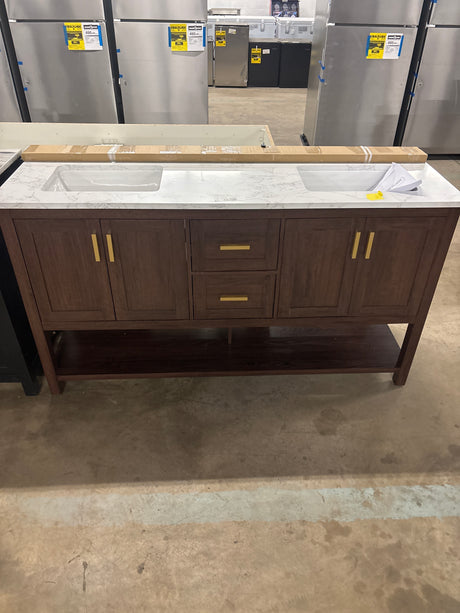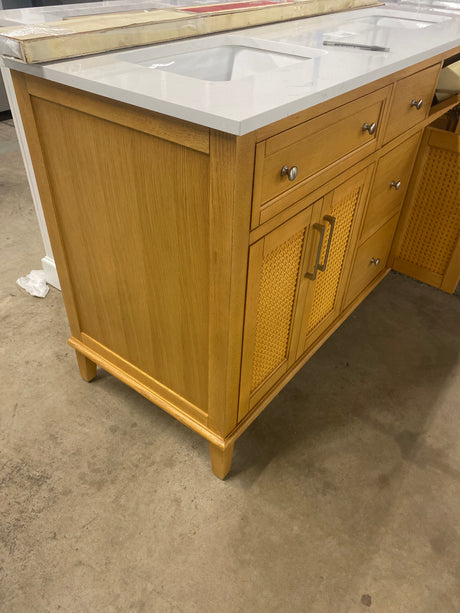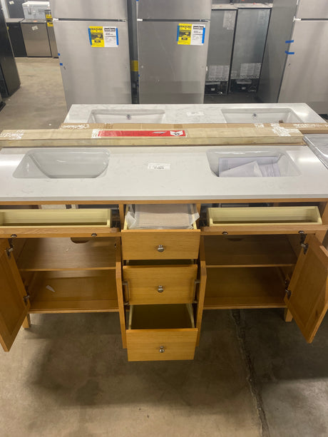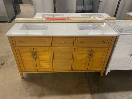 Regular price $195.00Unit priceUnavailable Moresly 60 in. Double Sink Natural Oak Bath Vanity with White Engineered Stone Top (Assembled)