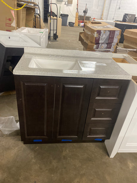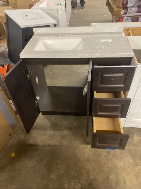 $80.00Unit price /UnavailableVery low stock (1 unit)Delridge 31 in. Single Sink Chocolate Bath Vanity with Caramel Cultured Marble Top (Assembled)