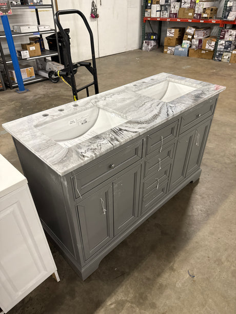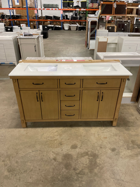 Danby 60 in. Double Sink Platinum Oak Bath Vanity with White Engineered Marble Top (Assembled)