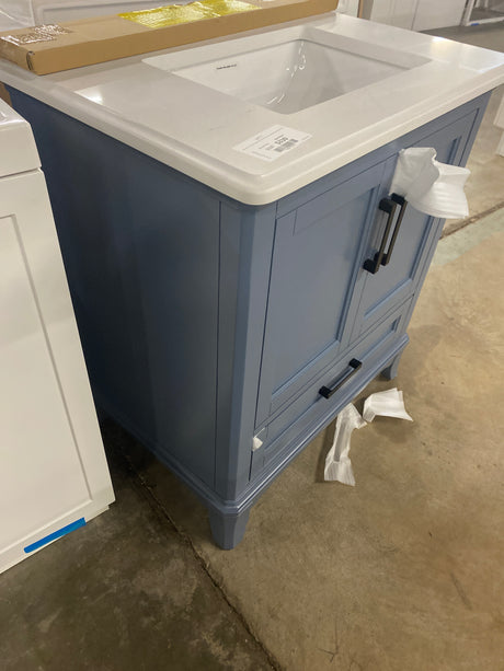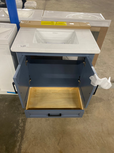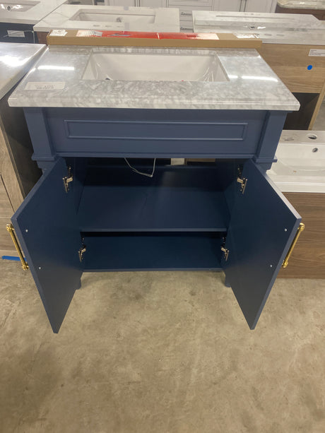 Aberdeen 30 in. x 22 in. D x 34.5 in. H Bath Vanity in Midnight Blue with White Carrara Marble Top