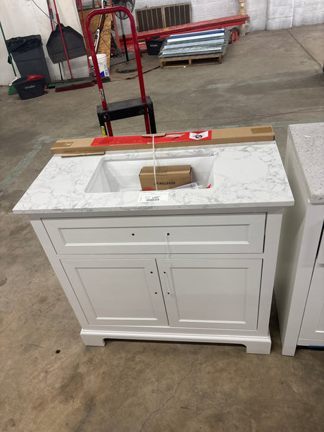 Melpark 36 in. W x 22 in. D x 34.5 in. H Bath Vanity in White with White Cultured Marble Top