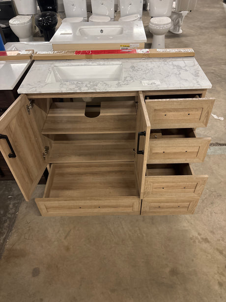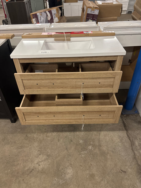 Tobana 42 in. W x 19 in. D x 34.5 in. H Bath Vanity in Weathered Tan with White Cultured Marble Top