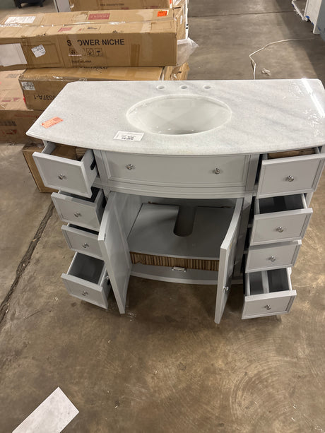 Hampton Harbor 45 in. W x 22 in. D Bath Vanity in Dove Grey with Natural Marble Vanity Top in White