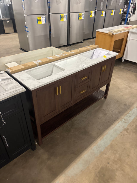 Regular price $190.00Unit priceUnavailableVery low stock (1 unit)Beaufort 60 in. Double Sink Black Bath Vanity with Epoxied White Engineered Stone Top (Assembled)
