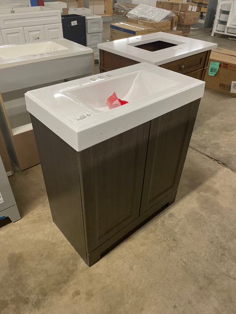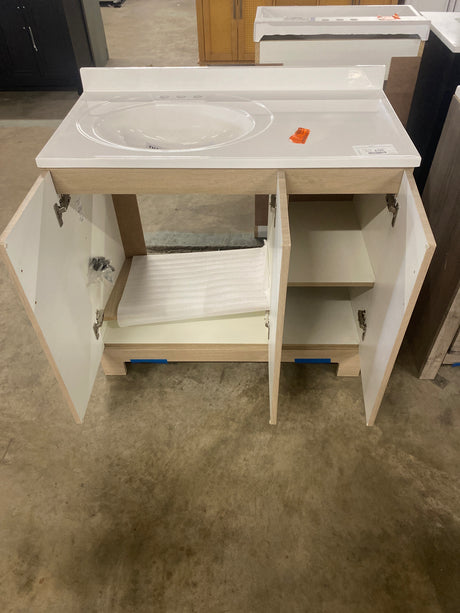 Regular price $220.00Unit priceUnavailable Woodbrook 31 in. Single Sink White Washed Oak Bath Vanity with White Cultured Marble Top (Assembled)