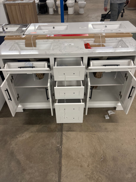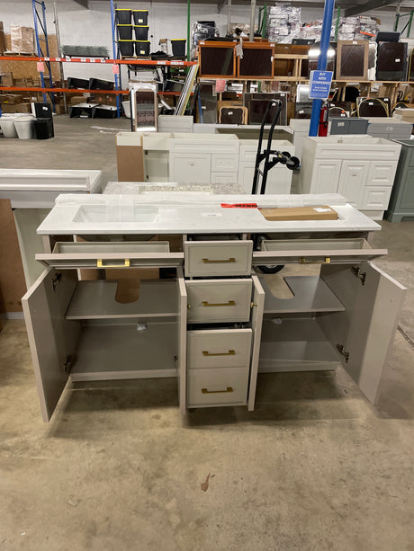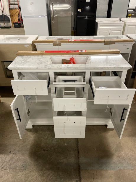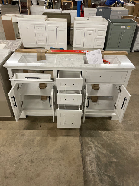 Doveton 60 in. W x 19 in. D x 34.50 in. H Bath Vanity in White with White Cultured Marble Top