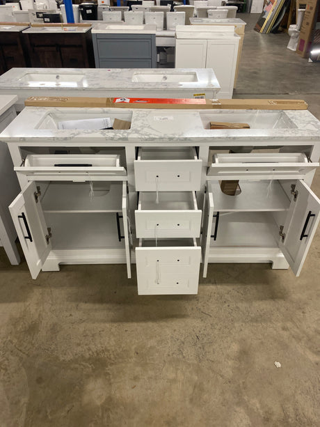 $245.00Unit price /UnavailableVery low stock (1 unit)Doveton 60 in. W x 19 in. D x 34.50 in. H Bath Vanity in White with White Cultured Marble Top