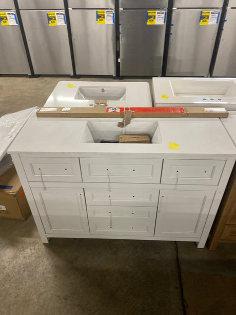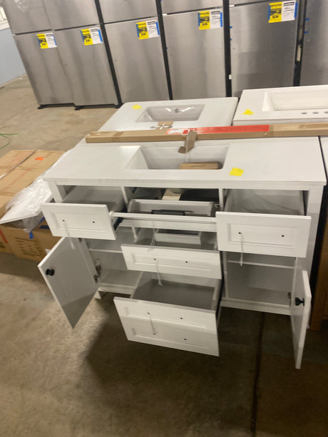 Hanna 48 in. Single Sink White Bath Vanity with White Engineered Stone Top (Assembled)
