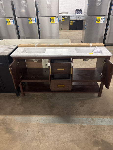 Aberdeen 72 in. W x 22 in. D x 34.5 in. H Bath Vanity in White with Epoxied White Carrara Marble Top