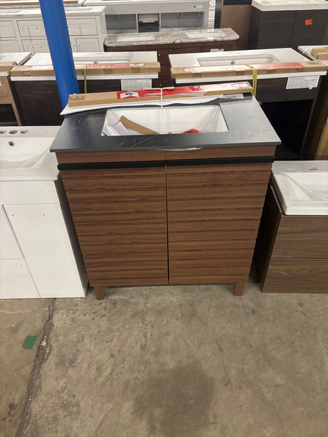Rydal 30 in. Single Sink Spiced Walnut Bath Vanity with Black Sintered Stone Top (Assembled)