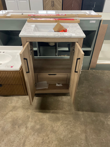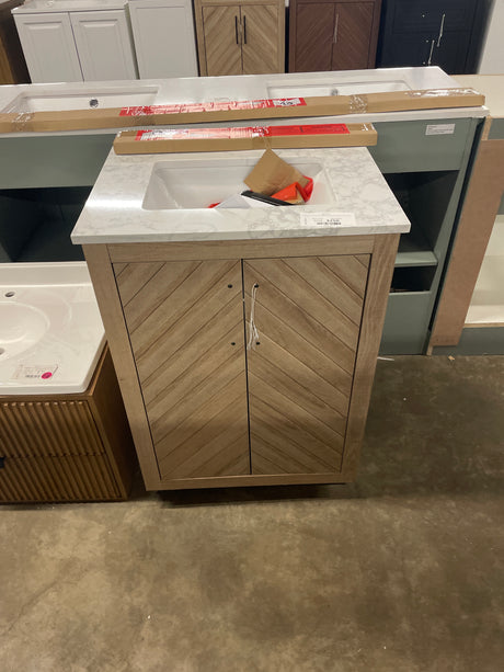 Autumn 24 in. Single Sink Weathered Tan Bath Vanity with White Engineered Stone Top (Assembled)