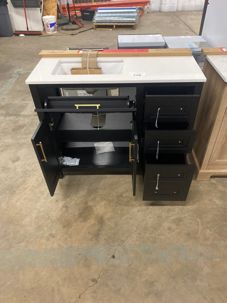 Beaufort 42 in. Single Sink Black Bath Vanity with White Engineered Stone Top (Assembled)