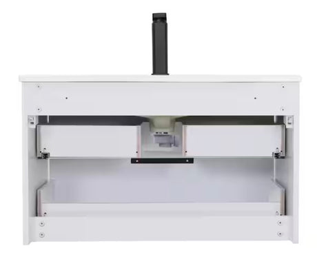 30 in. W x 18 in. D x 34 in. H Single Sink Bath Vanity in Black with White Ceramic Top