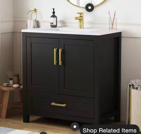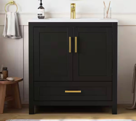 Regular price $80.00Unit priceUnavailableVery low stock (1 unit)30 in. W x 18 in. D x 34 in. H Single Sink Bath Vanity in Black with White Ceramic Top