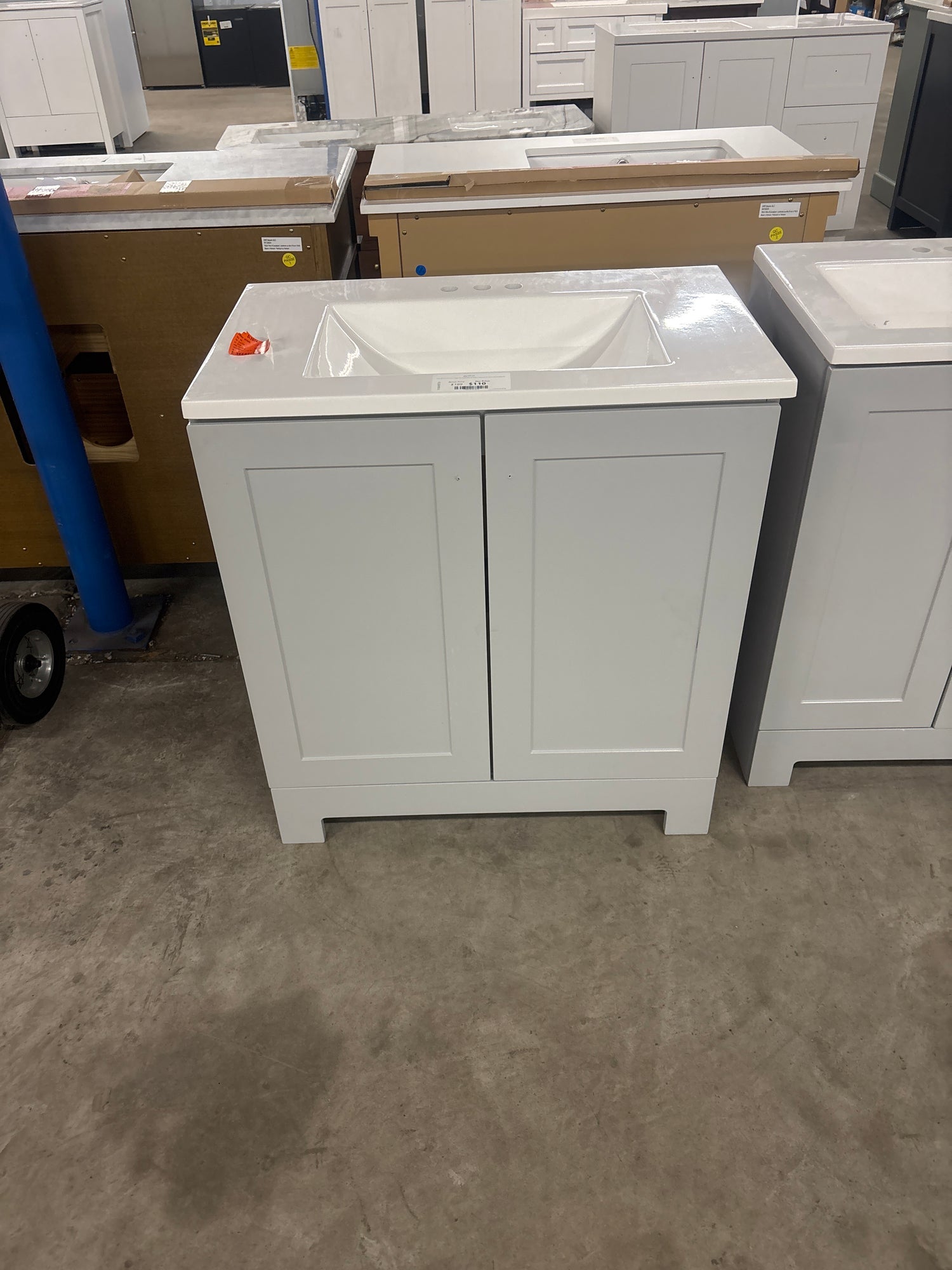 30 in. W x 19 in. D x 33 in. H Single Sink Freestanding Bath Vanity in Pearl Gray with White Cultured Marble Top