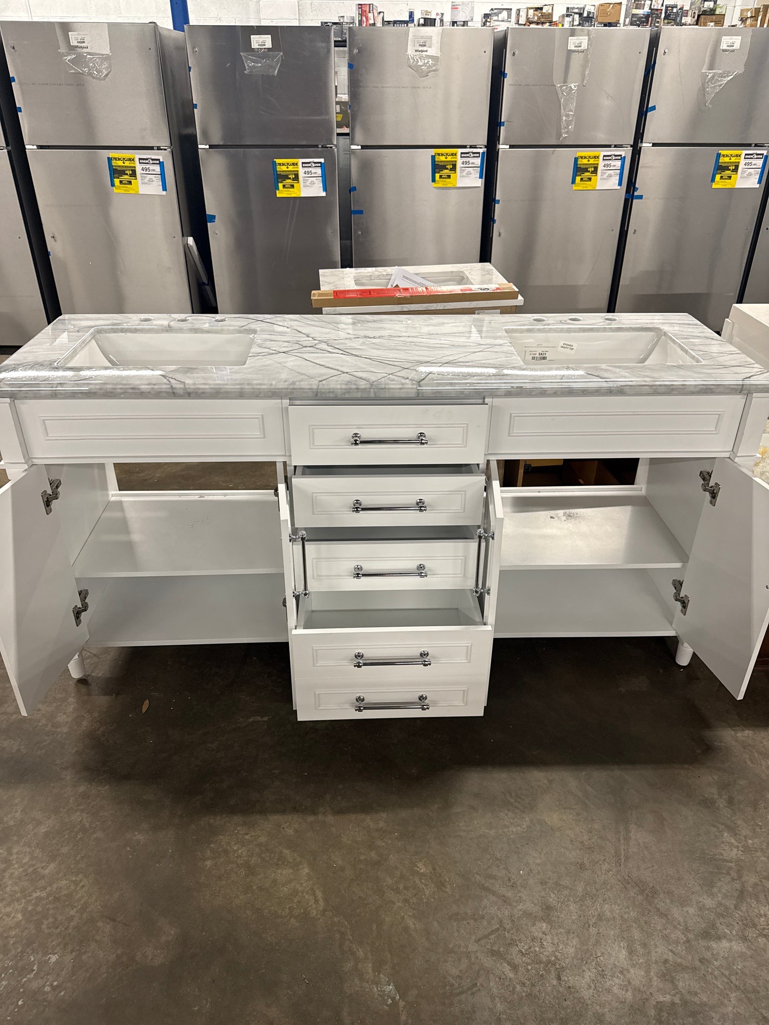 Aberdeen 72 in. W x 22 in. D x 34.5 in. H Bath Vanity in White with Epoxied White Carrara Marble Top