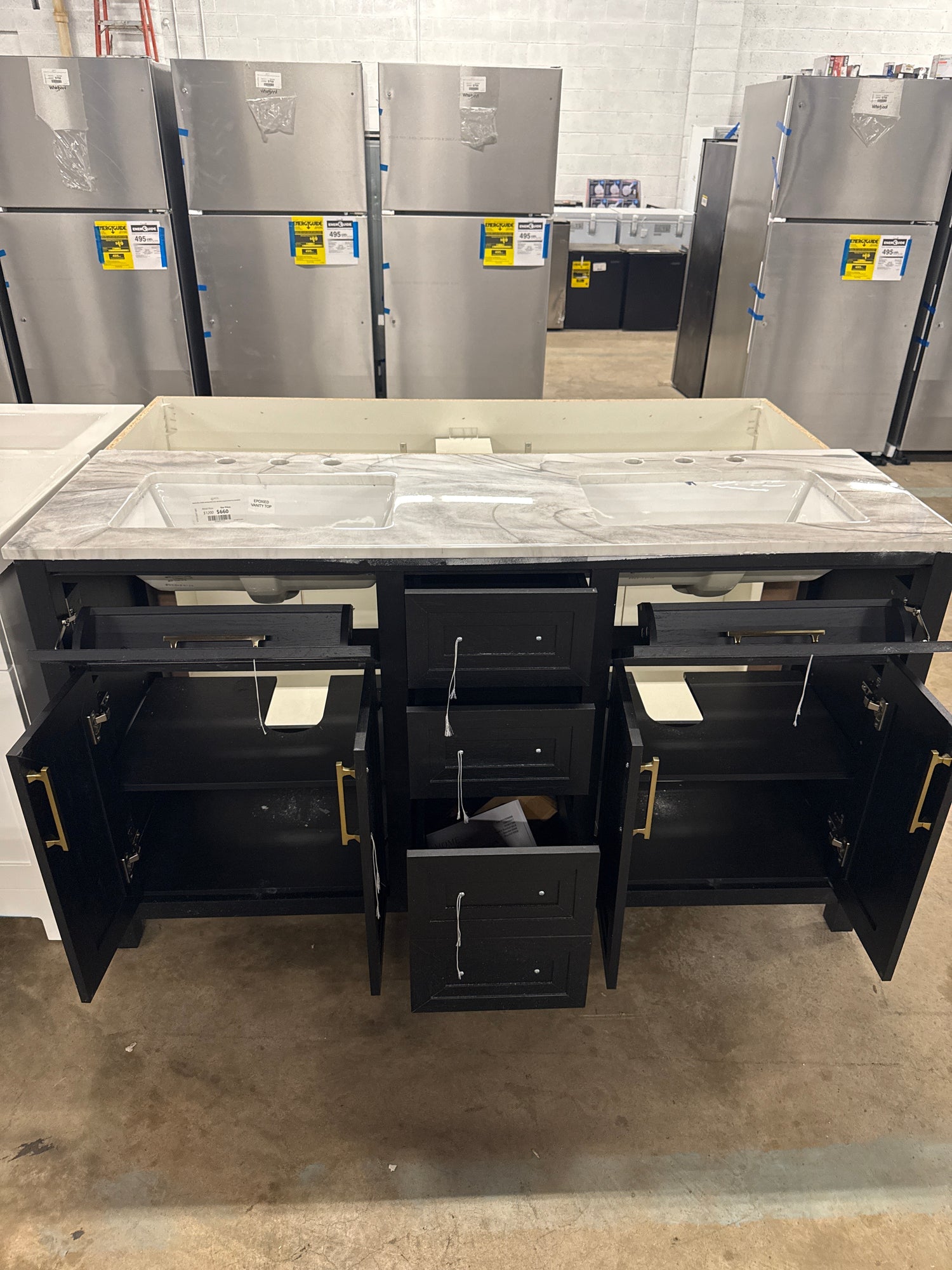 Beaufort 60 in. Double Sink Black Bath Vanity with Epoxied White Engineered Stone Top (Assembled) is backordered and will ship as soon as it is back in stock.