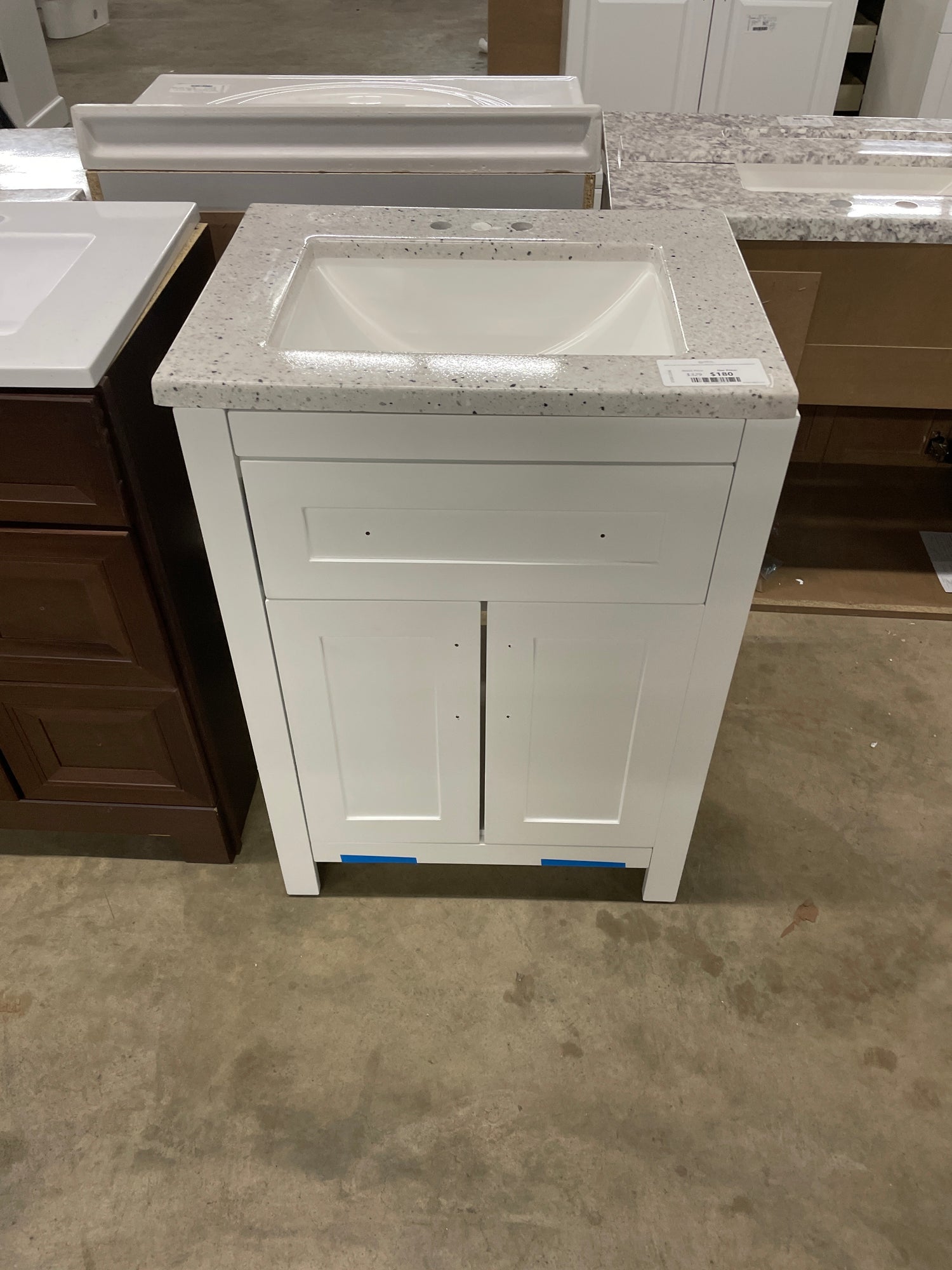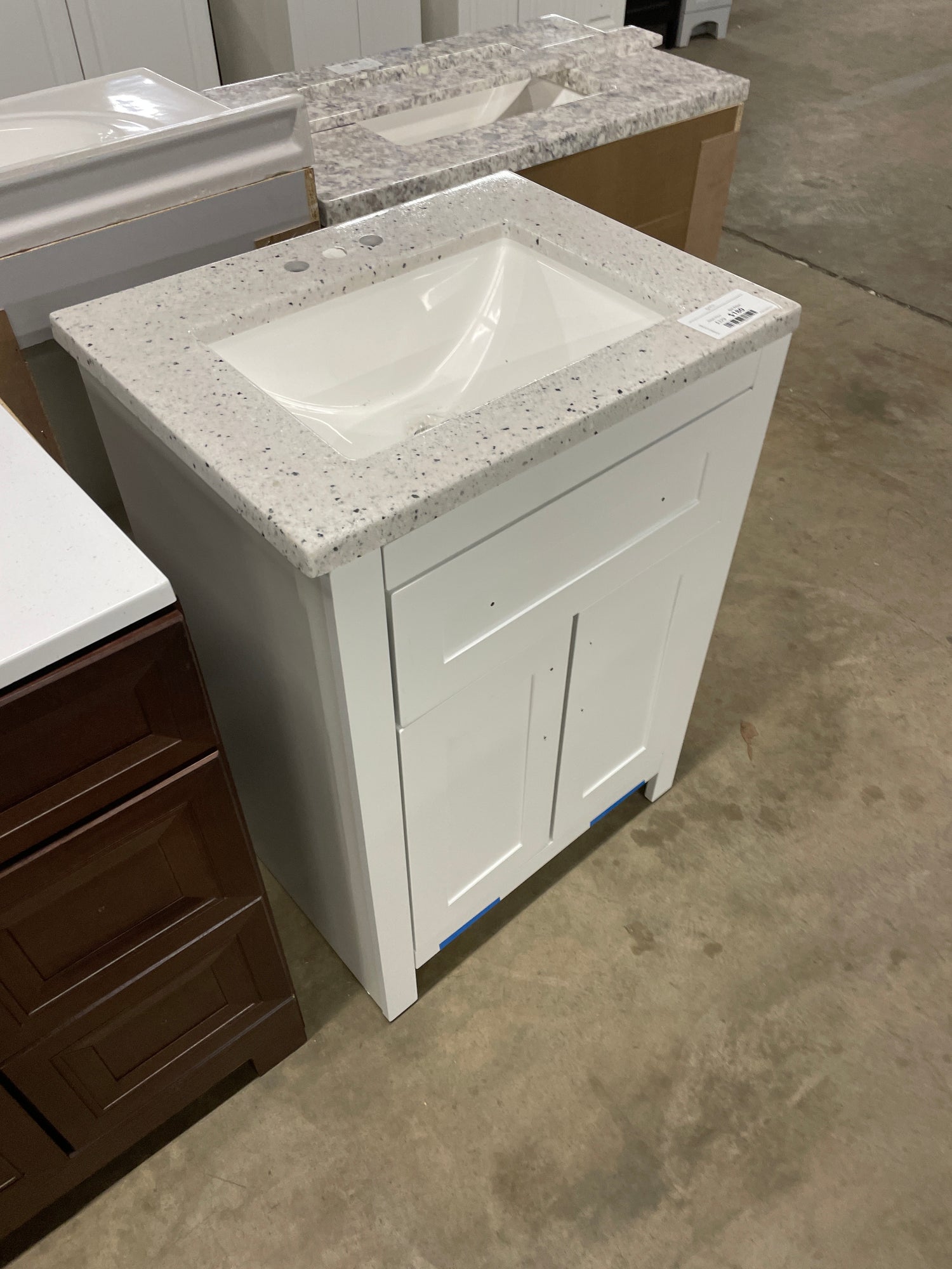 Clady 25 in. W x 19 in. D x 35 in. H Single Sink Freestanding Bath Vanity in White with Silver Ash Cultured Marble Top is backordered and will ship as soon as it is back in stock.